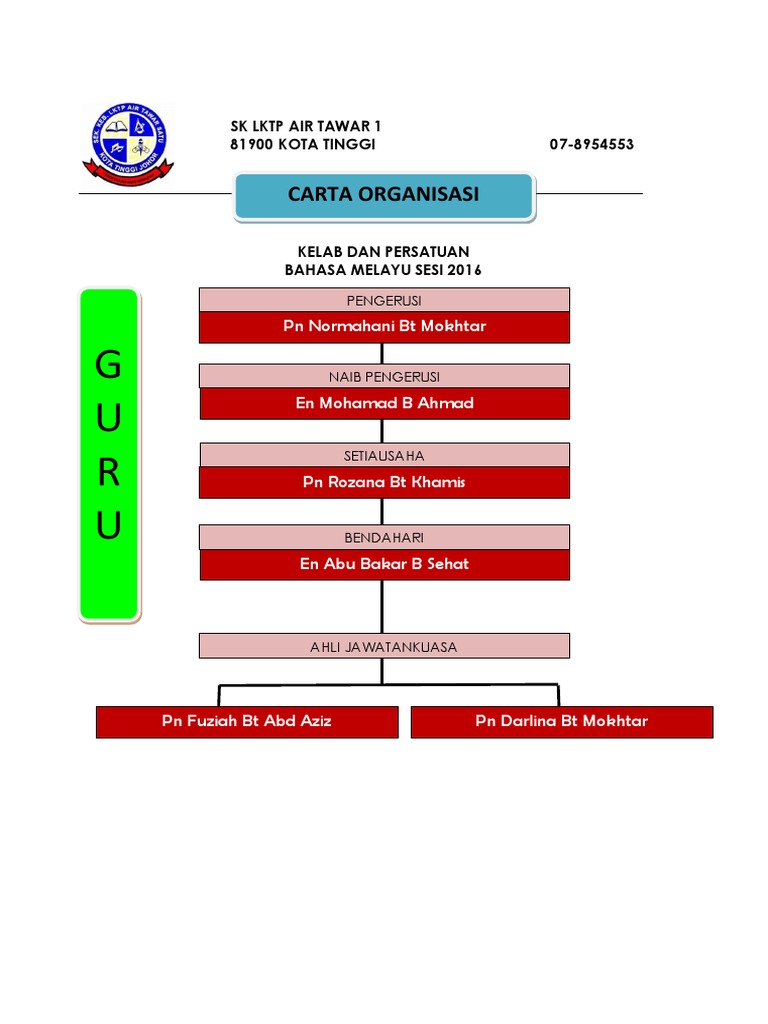 1 from Sistem guru online kali ini akan berkongsikan 'native file' carta organisasi sekolah ini. Carta organisasi kelab dan persatuan. Menukar tahun, lencana sekolah dan perincian nama sekolah dan alamatnya kepada maklumat. Newer post older post home. Tanggal berdirinya organisasi pergerakan tersebut hingga kini kita peringati sebagai hari kebangkitan nasional. Contoh carta organisasi kelab sukan mp3 & mp4. Penasihat / guru besar ( ramlan jafery bin mat johan). Carta organisasi kelab sukan dan permainan penasihat pengetua (abdullah b.